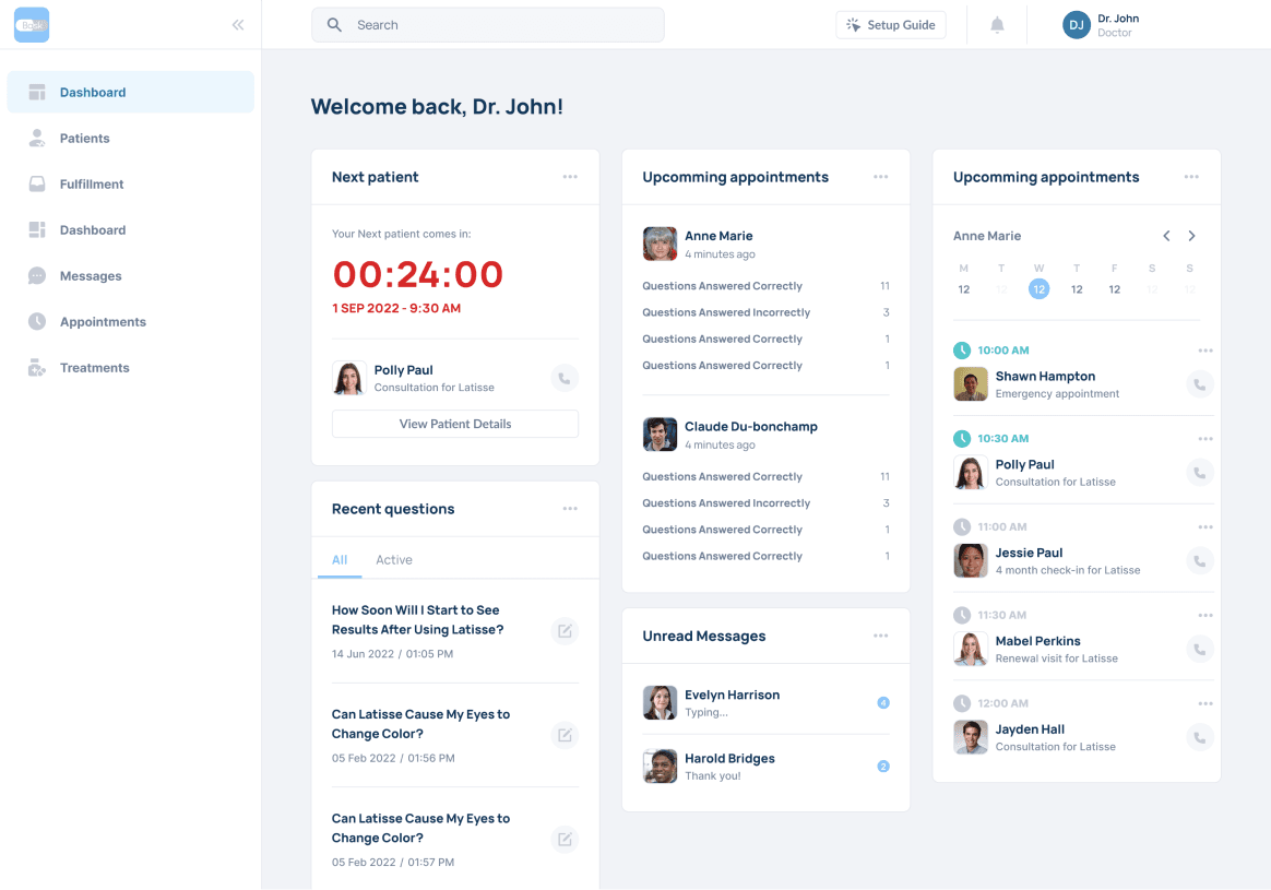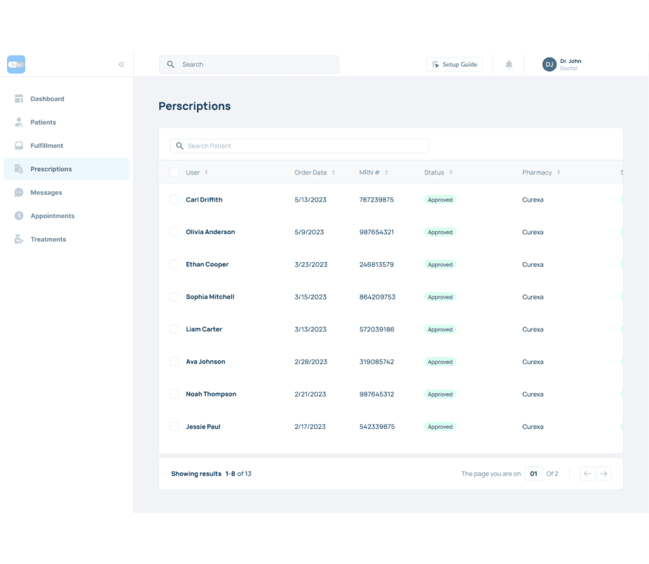 A dedicated place to chat with patients, keep track of appointments, manage prescriptions, and more.